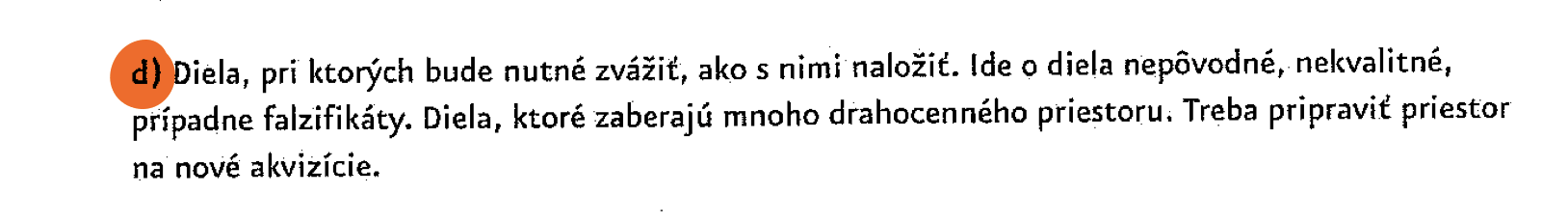 Králik v nej hovoril o dielach, ktoré označil za „nepôvodné, nekvalitné, prípadne falzifikáty“ a ktoré podľa jeho vyjadrenia „zaberajú mnoho drahocenného priestoru“.