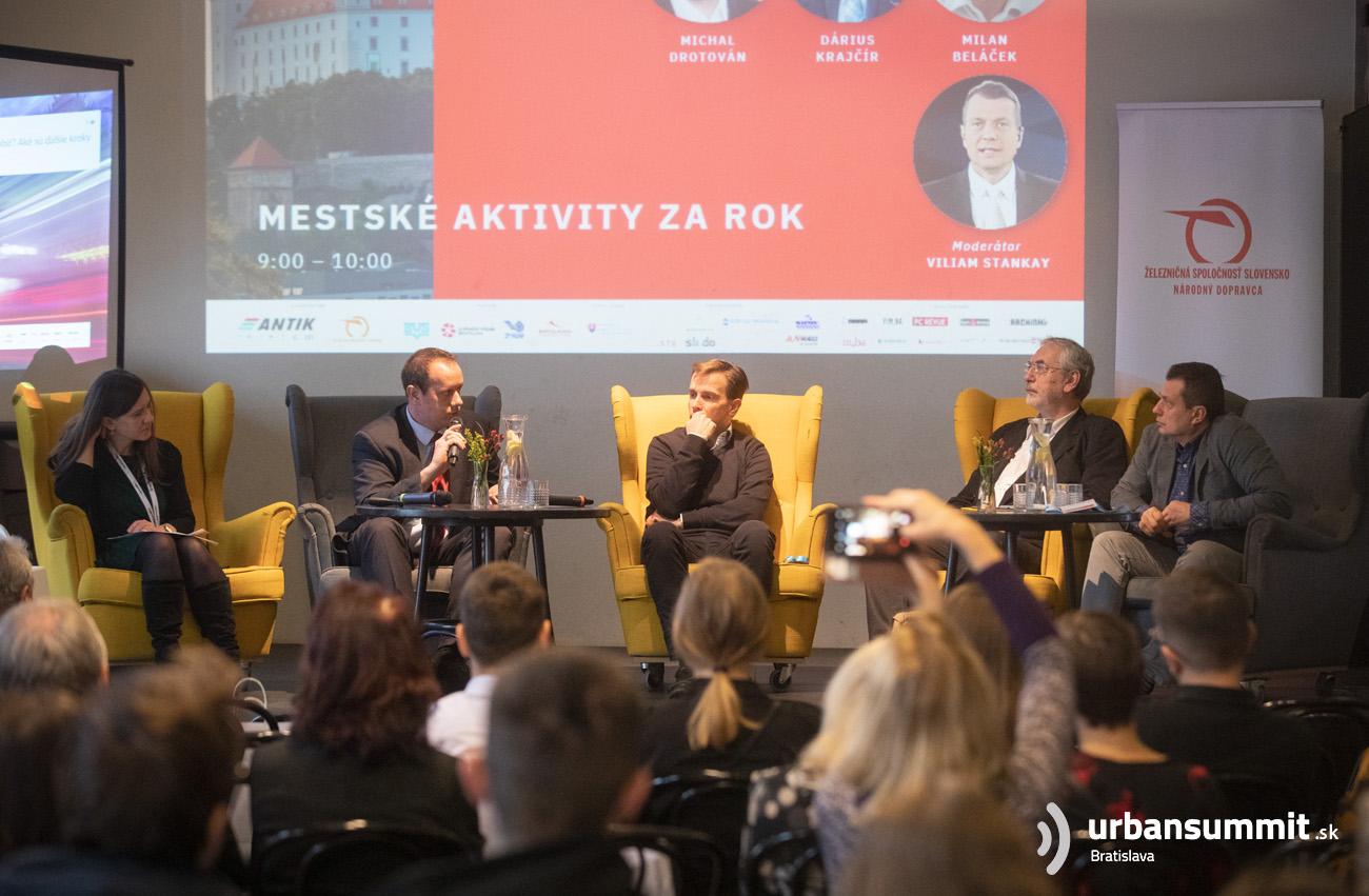 Na tému mestské aktivity za rok debatovali starostovia mestských častí Bratislavy. Zbilancovali uplynulé aktivity a predstavili výzvy nasledujúceho obdobia. Dárius Krajčír, starosta mestskej časti Bratislava – Devínska Nová Ves, hovoril o zameraní sa na projekty rozširovania kapacity materských a základných škôl, ktorých zanedbanie by mohlo negatívne zasiahnuť do života produktívneho obyvateľstva. Milan Beláček z oddielu rozvoja mestskej časti Bratislava – Dúbravka zas priblížil nutnosť rekonštrukcie väčšiny obytných budov, keďže patria k jedným z najstarších v Bratislave. Ich cieľ je hľadať ekologickejšie riešenia na princípe zelenej a modrej koncepcie, s prihliadaním na zlepšenie mikroklímy a zachovanie vysokého pomeru zelene na obyvateľa. Do diskusie prispel aj Michal Drotován, starosta mestskej časti Bratislava – Rača, ktorý priblíži zložitosť vo financovaní samospráv. „Súčasné pravidlá sú nastavené tak, že samospráva môže čerpať úver len do výšky 50% svojho ročného príjmu. To je akoby bežný človek, ktorého čistý mesačný príjem je 1 000 EUR, mohol vziať úver len 7 500 EUR. Zaobstarať si bývanie pri takýchto podmienkach je však nemožné. Preto musia samosprávy riešiť financie inou cestou – napr. cez eurofondy, ktoré však vedia celý proces skomplikovať a predĺžiť, výsledkom čoho je aj stagnovanie projektov, ktorému, žiaľ, momentálne čelíme,“ uviedol Drotován.