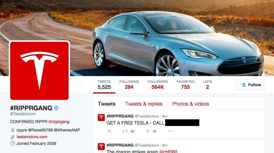 V takmer rovnakom čase boli upravené webové stránky Tesla Motors, kde útočník vyhlásil, že hackol všetky účty a stránky Tesly. Okolo tretej poobede boli všetky stánky vypnuté. Už do hodiny sa Tesle podarilo získať účet na sociálnej sieti Twitter späť, no s web stránkou to bolo ťažšie. Aktuálne vyzerá byť všetko tak, ako má byť. Všetky účty fungujú normálne, bez nejakých divných tweetov alebo odkazov. Nie je to nič nezvyčajné, že hackeri napadnú nejakú stránku alebo veľmi populárny účet na Twitteri alebo Instagrame. Pred nedávnom sa to stalo aj na účte aktuálne veľmi populárnej mladej americkej speváčky Taylor Swift. Jej účet hackli približne pred týždňom.