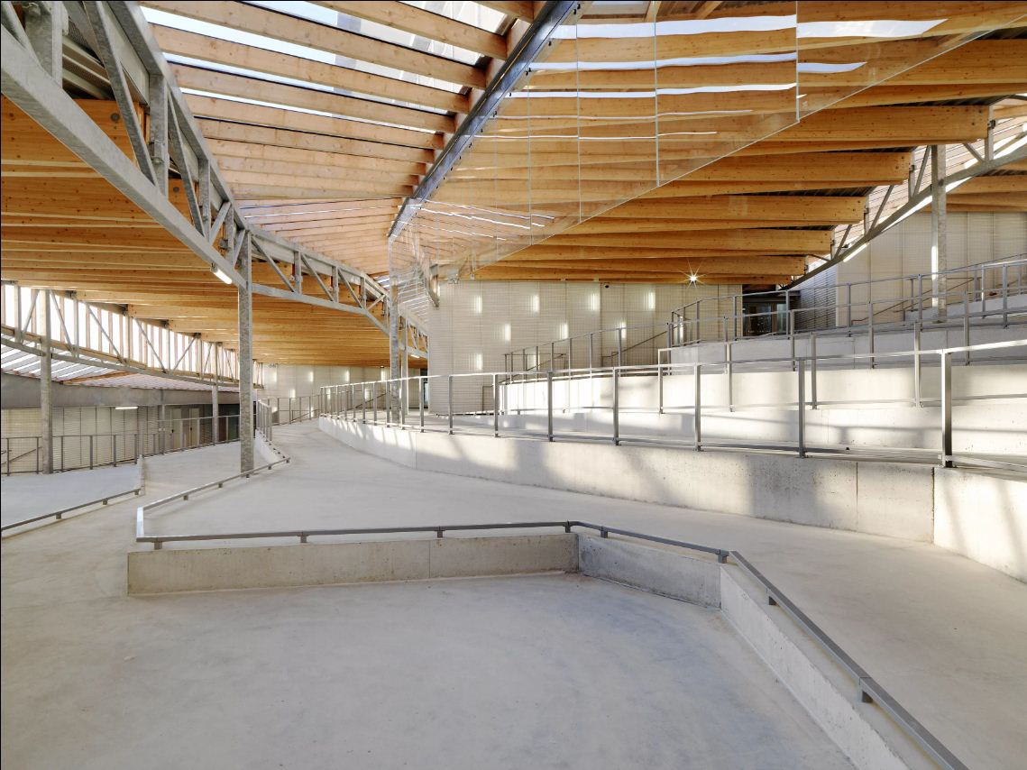 Učebne sú umiestnené pod terasami so zelenými „pásmi“, a vďaka strategickej orientácií a veľkého množstva okien, majú veľa denného svetla, rovnako ako krásny panoramatický výhľad na zelené údolie.
