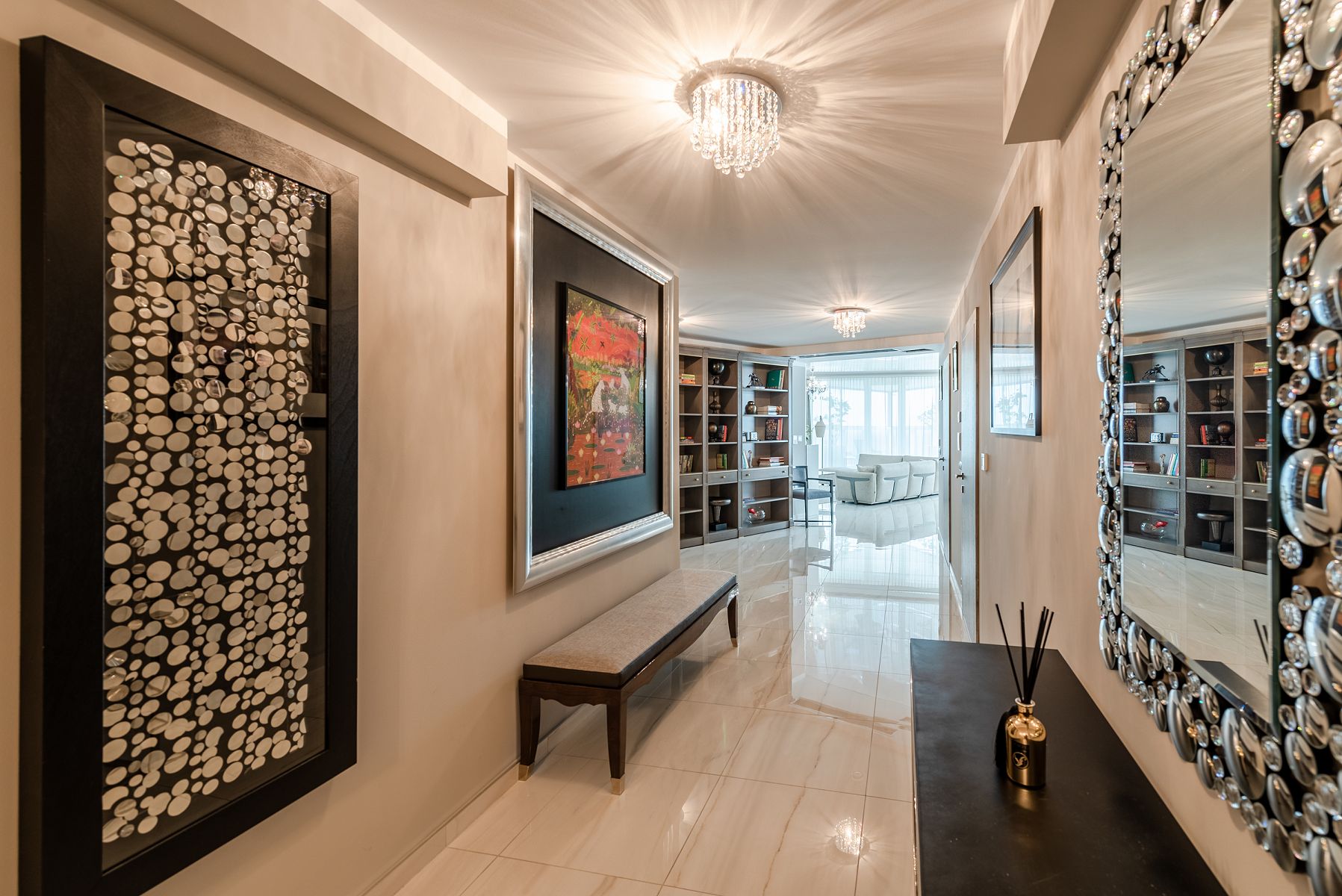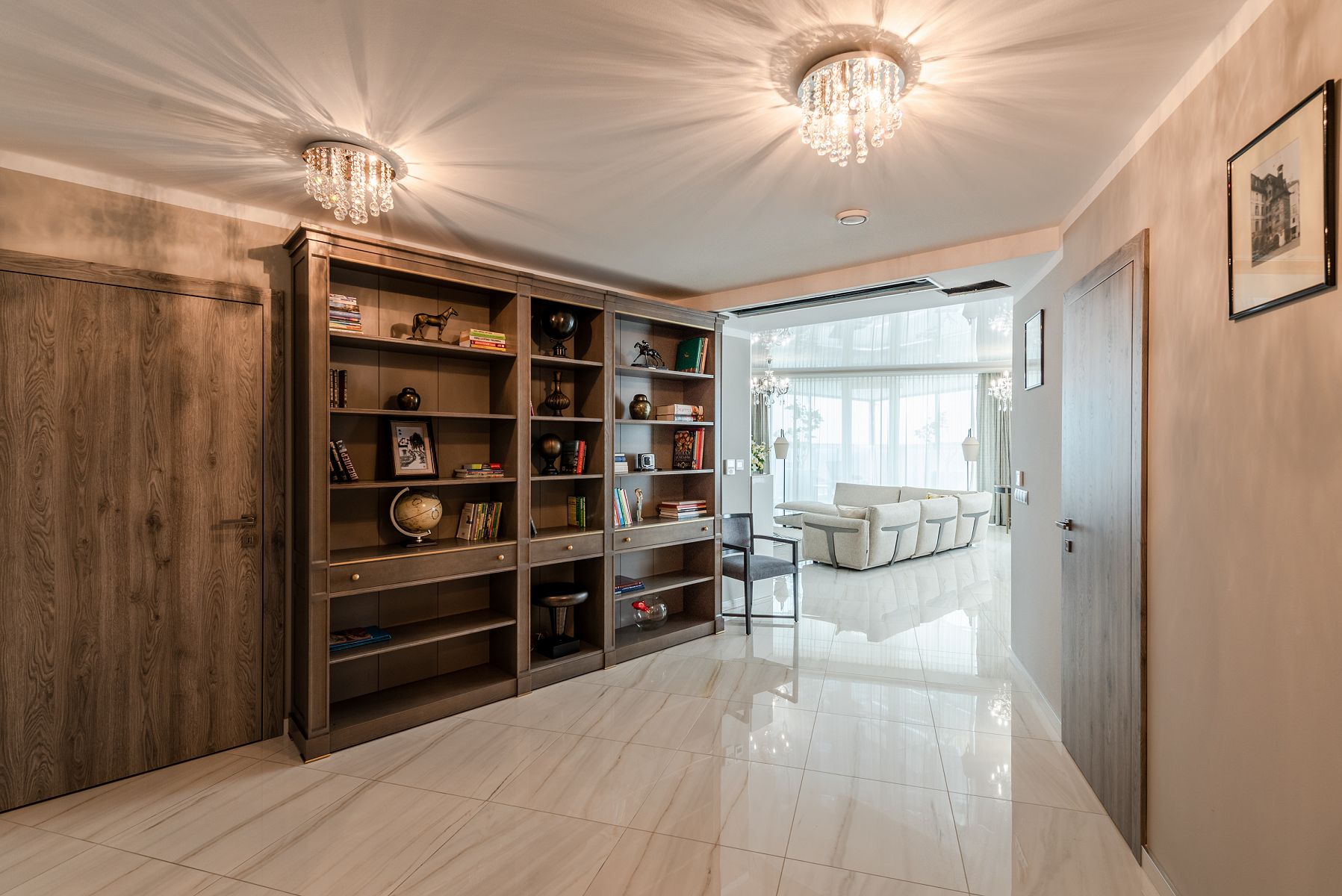 Byt s rozlohou 147 metrov štvorcových sa predáva kompletne zariadený dizajnovým francúzskym a talianskym nábytkom značiek Roche Babois a Natuzzi Italia. V dennej časti sa nachádzajú veľkoformátové dlažby a v nočnej drevené parkety.