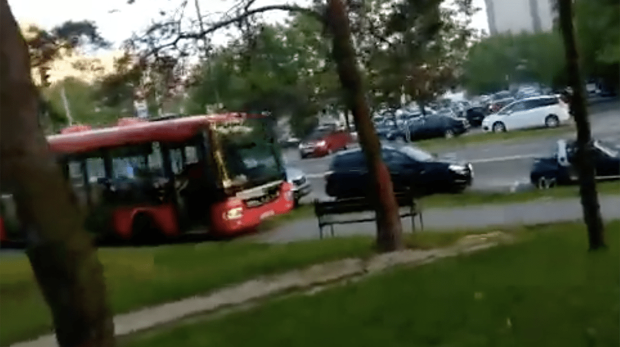 Blikajúci prázdny autobus, ktorý valcuje lavičky až skončí v autách a malom parku. Šofér ho podľa prvých záberov z videa „nedobehol“.