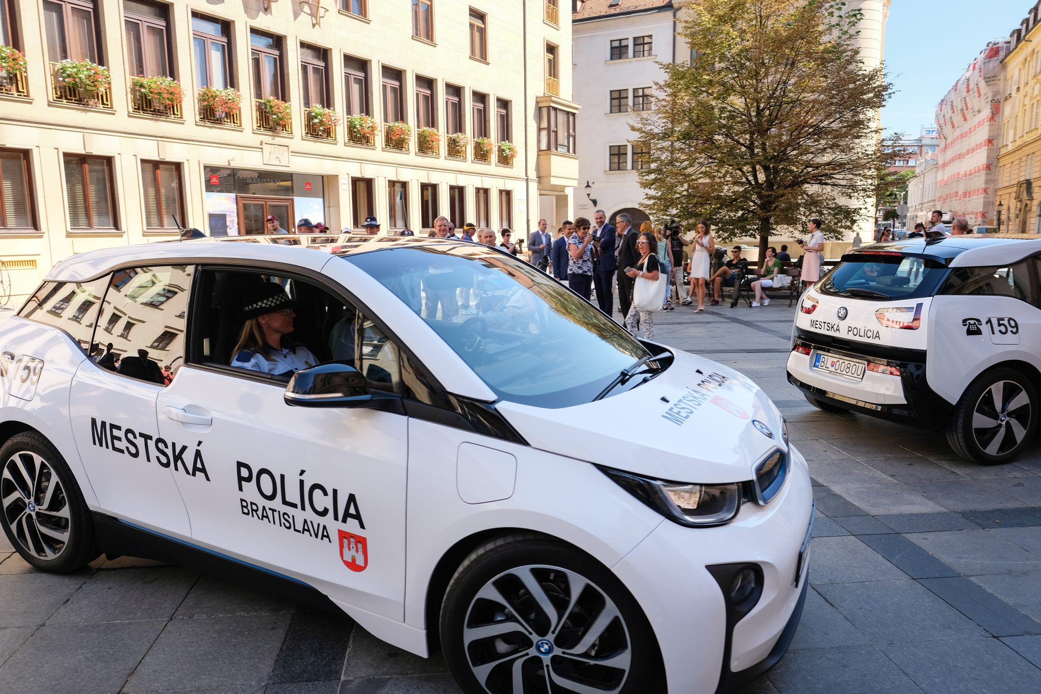 Generálny riaditeľ BMW Group Slovakia, Michael Kordys, odovzdal náčelníkovi Mestskej polície Bratislavy dva elektromobily BMW i3. Tie budú môcť bratislavskí policajti bezplatne používať do 31. októbra tohto roku.