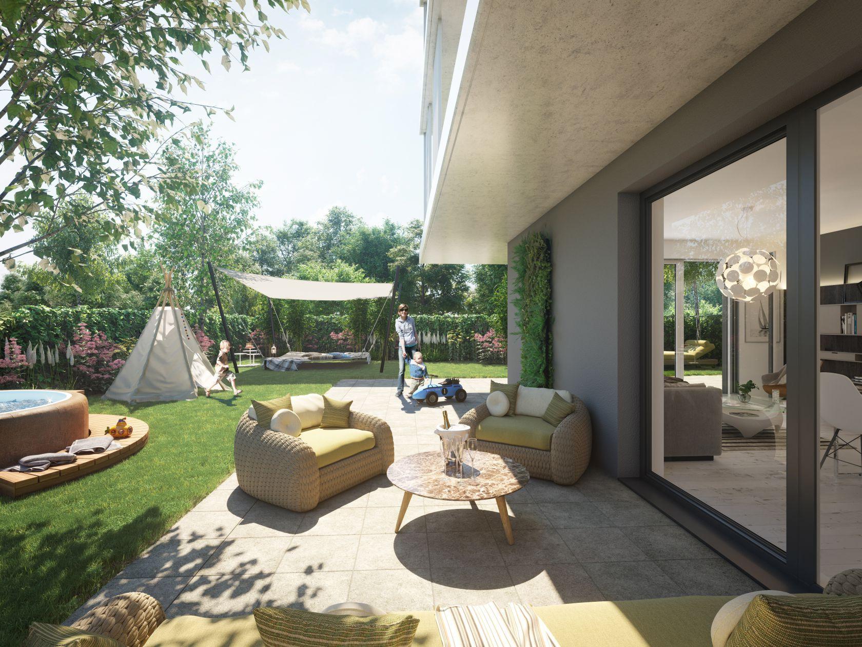 Celú filozofiu podčiarkujú aj rozsiahly park v strede štvrte, veľké balkóny, predzáhradky či strešné terasy, ideálne na letné posedenia, letné kinovečery či grilovačky.