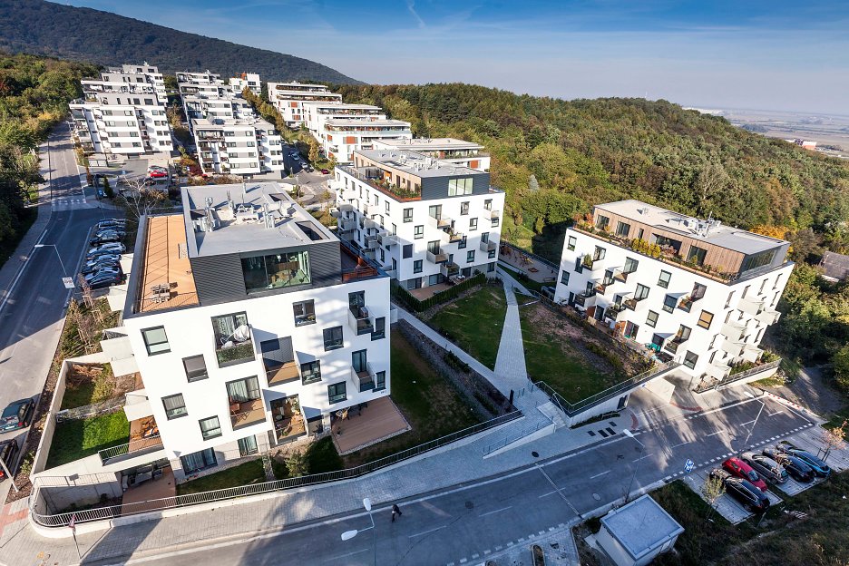 - Trojica bytových domov osadená v severnom svahu s panoramatickým výhľadom na okolitú krajinu