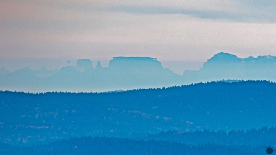 „Zo Šumavských hrebeňov boli v pondelok opäť pozorovateľné Alpy. Vynikajúcej dohľadnosti prialo vhodné počasie − vo výške prúdil suchý a teplý vzduch a v nižších polohách, naopak, prenikal na územie Čiech chladnejší vzduch,“ uvádza iMeteo.