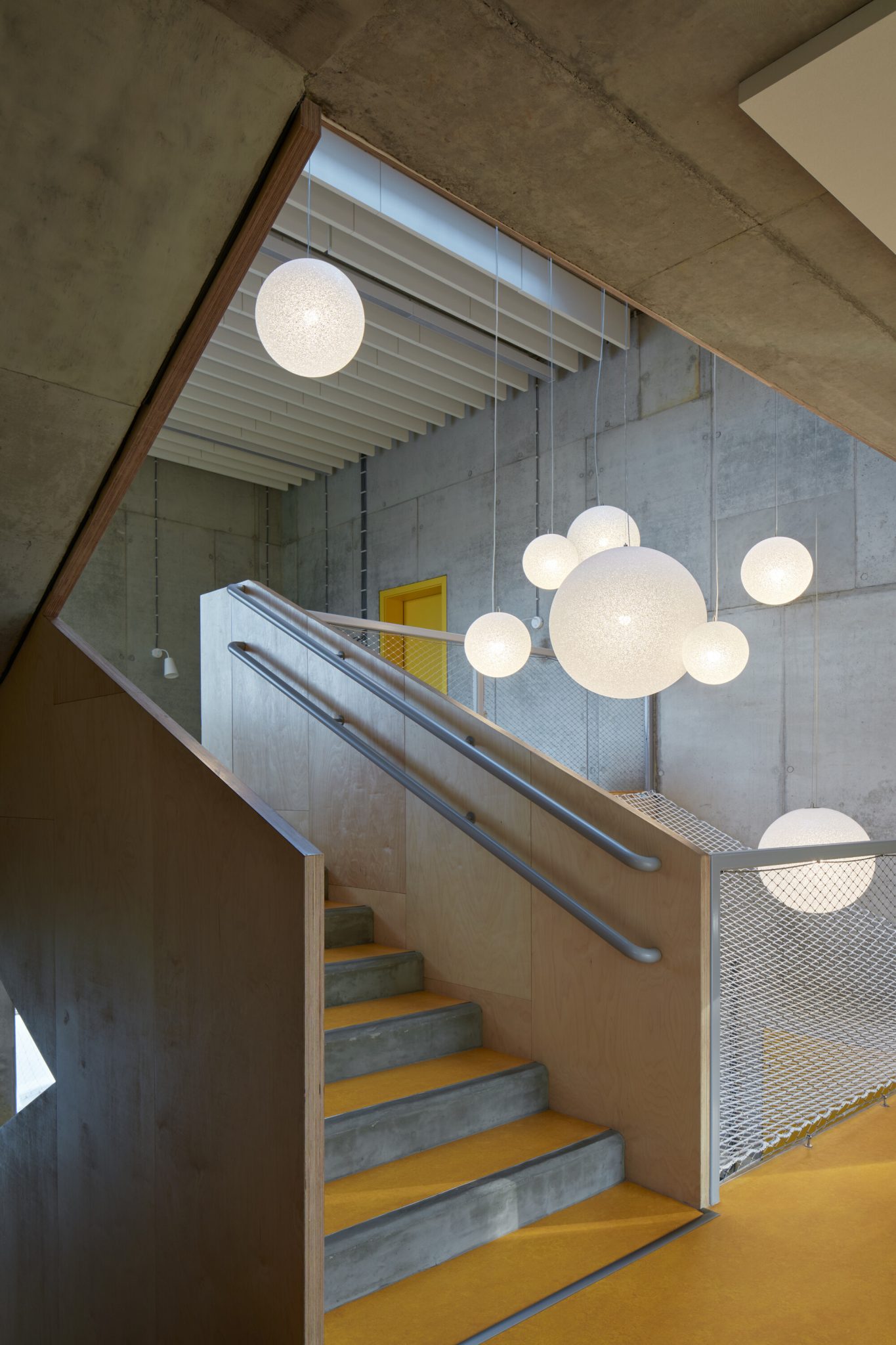 Za nezvyčajnou dostavbou škôlky v Jablonci nad Nisou stoja štúdio Mjölk architekti a Projektový ateliér David. Na strechu umiestnili hernú terasu a poschodia vo vnútri škôlky prepojili tobogánom. Vnútorný priestor je vlastne jedna veľká miestnosť členená do štyroch medziposchodí – deti tak na seba môžu vidieť, ale aj nájsť súkromie pre hru.