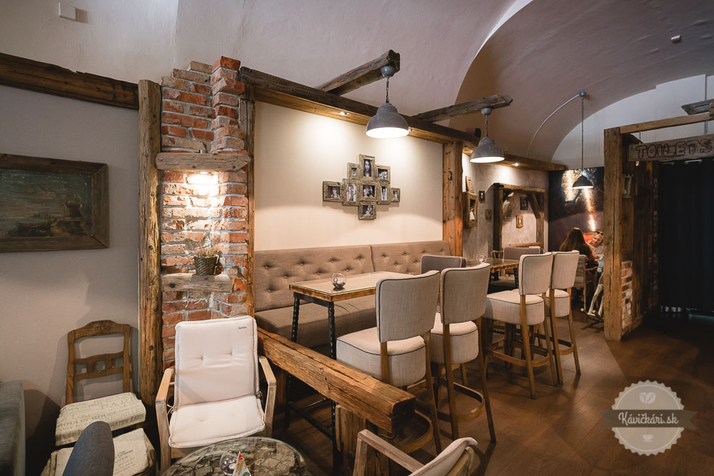 Kombinácia dreva, sivej farby, tehlových stien a detailov spoločne vytvárajú unikátny dizajn, ktorý si majiteľ vytvoril sám. V interiéry nájdete množstvo doplnkov zo zahraničných ciest. Unikátne sú aj drevené stoly a stoličky z 80 až 200 ročného dreva.