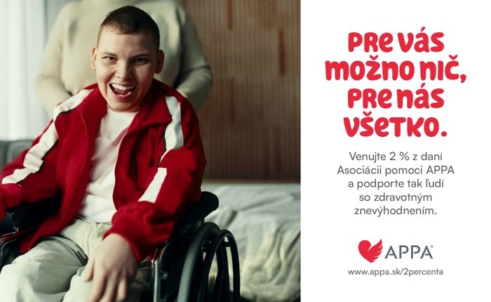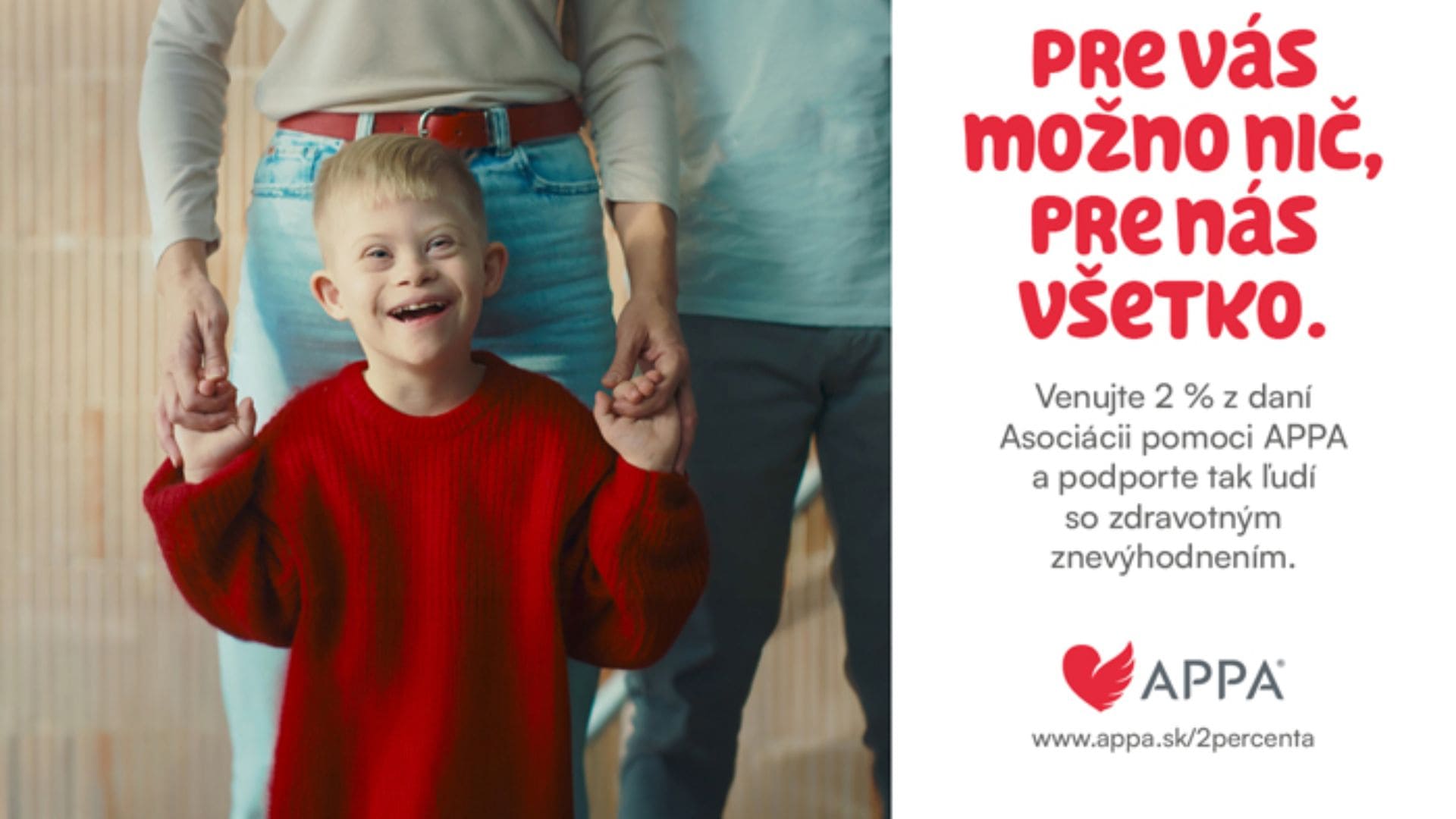 „V rámci kampane pre APPA sme sa rozhodli zamerať na autentickosť, empatiu a príbeh, ktorý rezonuje so širokou verejnosťou. Cieľom bolo ukázať, že pomoc ľuďom so zdravotným znevýhodnením nie je len otázkou veľkých čísiel, ale je niečo, čím môže pomôcť naozaj každý z nás. Či už vaše 2 % predstavujú hodnotu večere, kávy alebo novej kabelky, každá pomoc sa počíta a kumulatívne môže mať naozaj veľký zásah do životov zdravotne znevýhodnených“, hovorí Jord Nikov z agentúry Work&Hugs, ktorá je autorom konceptu a kreatívnej myšlienky kampane.
