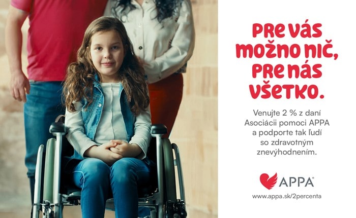 Kampaň „Chceme tvoje NIČ“ oslovuje Slovákov s výzvou na podporu detí a dospelých so zdravotným znevýhodnením združených v APPA venovaním 2 % z daní.