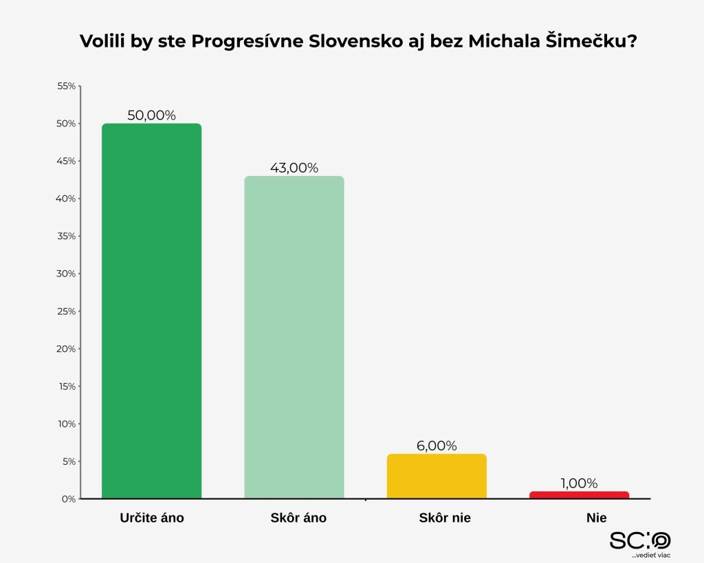 Výskum, ktorý sme v agentúre SCIO realizovali na základe dát z reprezentatívneho prieskumu začiatkom mája jasne ukázal, že najľahšie by bolo vymeniť predsedu PS Michala Šimečku. Je to zároveň jediná strana, kde polovica respondentov bez váhania uviedla, že by túto stranu volili aj bez súčasného predsedu.