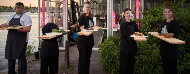Čašníci a kuchári tejto prevádzky sú vybavení rukavicami a na hlavách majú plastové štíty. Riad sa podáva na drevených doskách, ktoré je možné zbierať bez toho, aby museli vstupovať do skleníka. Reštaurácia Eten patrí do umeleckého komplexu Mediamatic, ktorého výstavy a prezentácie sa zvyčajne nesú v štýle trvalej udržateľnosti.