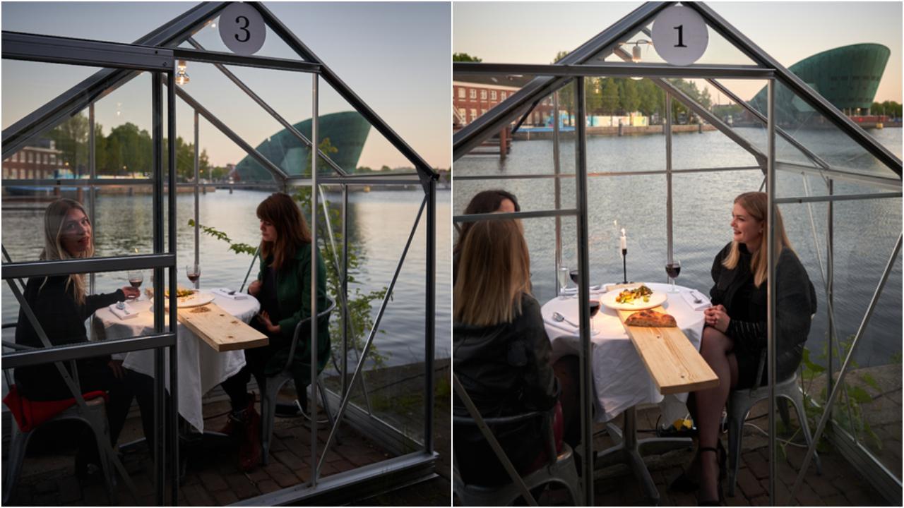 Tento koncept má na svedomí reštaurácia Mediamatic Eten, ktorej sa týmto spôsobom darí udržiavať medzi hosťami dostatočný sociálny odstup. V skleníku si môžu svoje jedlo vychutnať naraz dve až tri osoby, ktoré žijú v spoločnej domácnosti.