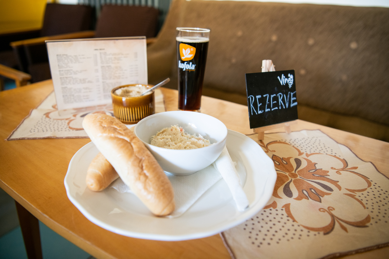 Právu tu si doprajete výbornú kávu a retro špeciality, ako je treska s rožkom, domáce pomazánky – oškvarková, rybacia, bryndzová, ale aj krupičnú kašu. Bonus je delikatesa menom Ruské vajce. Zapiť to môžeš výbornou čapovanou Kofolou Originál. V rámci zvoleného „menu“ potešili zohriate rožky, ktoré boli krásne teplé a chrumkavé. Návšteva tejto kaviarne ťa vyjde na 6 eur.