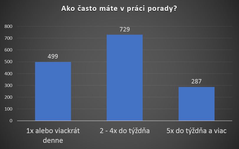 V prieskume sme spolu s Tatra bankou prostredníctvom nášho Instagramu oslovili našich 130-tisíc fanúšikov a pýtali sa pár jednoduchých otázok. V našej ankete odpovedali na otázky Ako často máte v práci porady? a Čo ti na poradách v práci najviac vadí? s možnosťou výberu medzi troma odpoveďami. Do oboch ankiet sa zapojilo približne 1 500 hlasujúcich. Takto si možno aj ty hlasoval: