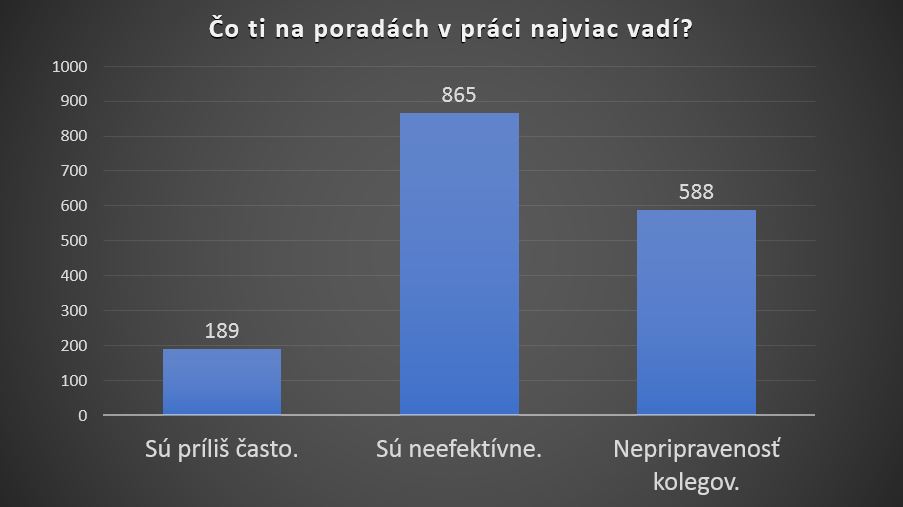 - Vďaka Startitup prieskumu, na ktorom sa zúčastnilo viac ako 1 500 respondentov, sme zistili, že Slovákom najviac na pracovných poradách prekáža ich neefektivita