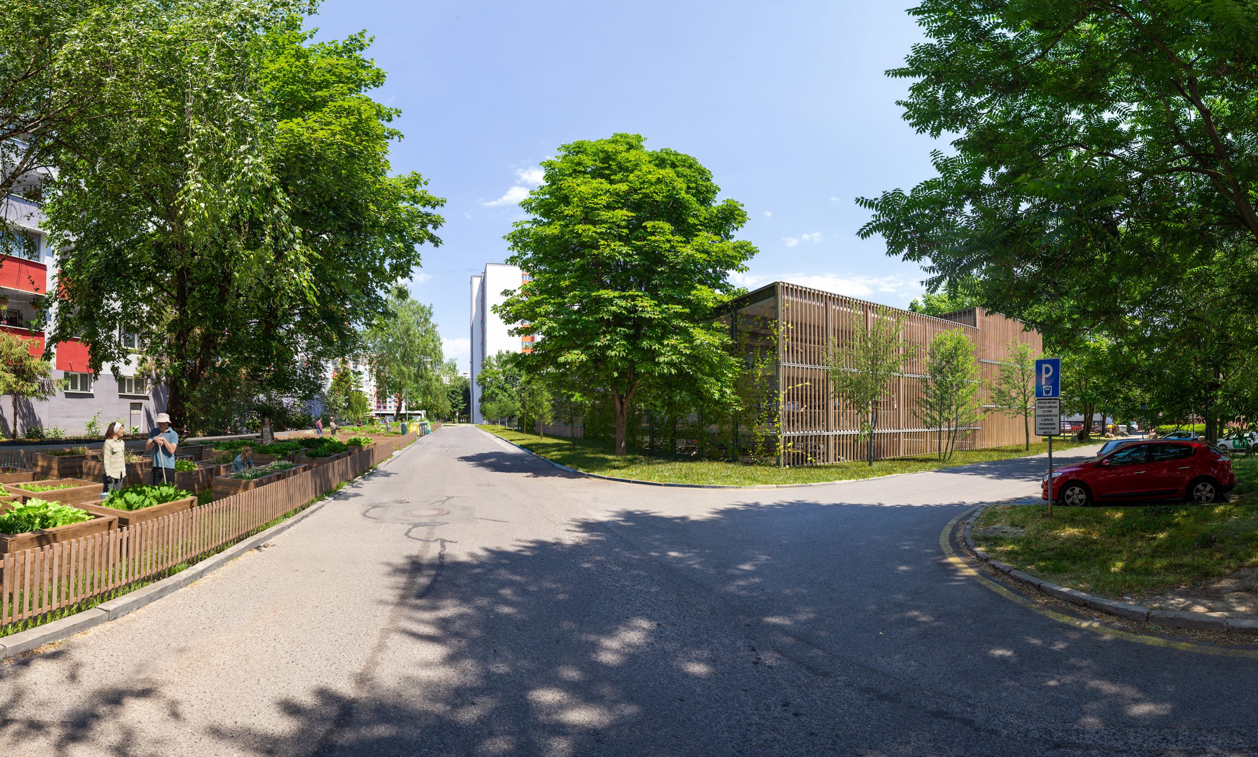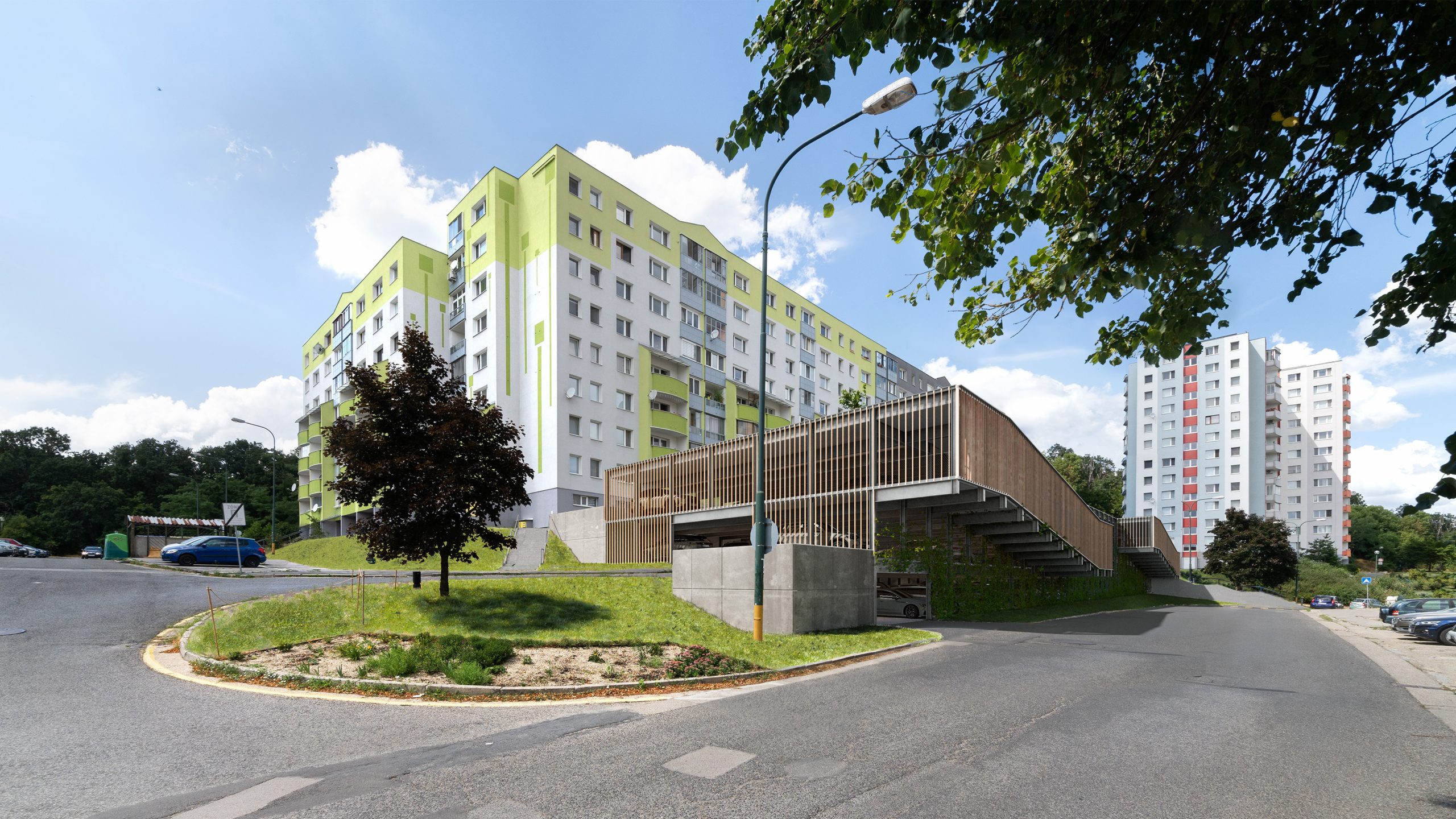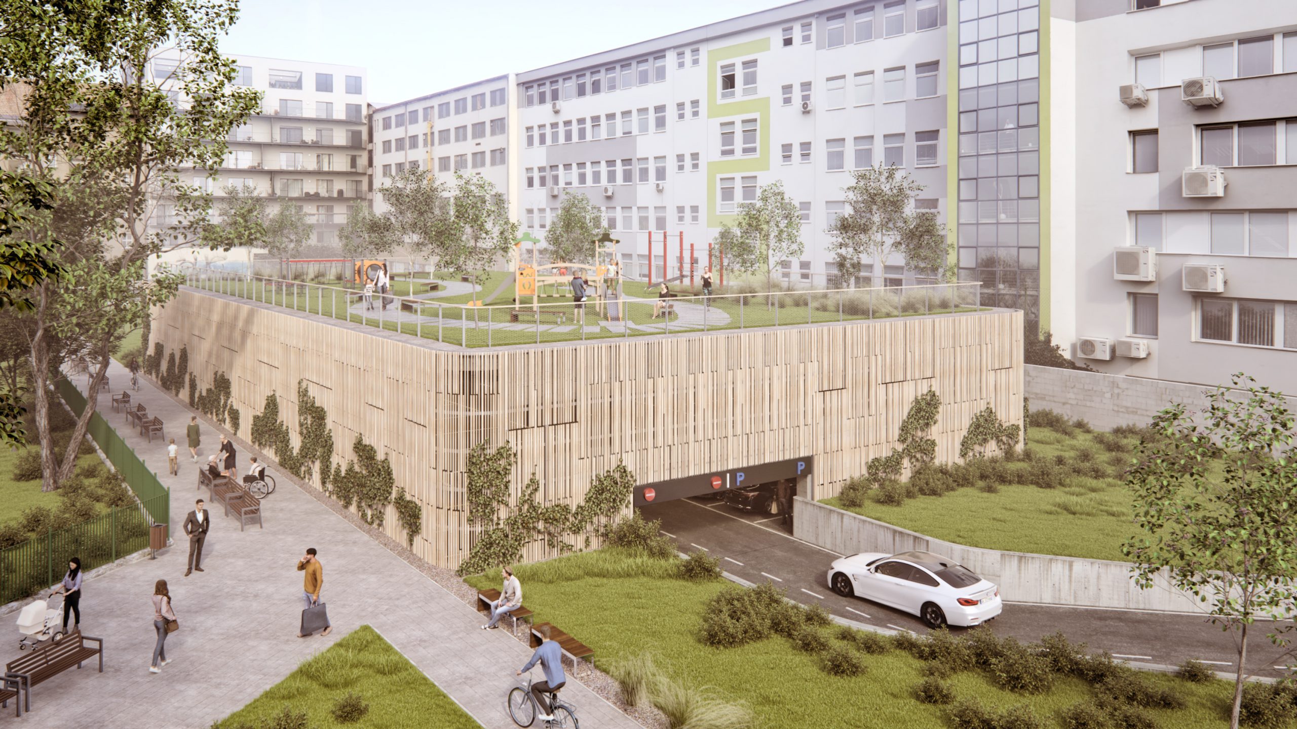Jedným z riešení parkovacích domov je dokonca aj zelená fasáda s popínavými rastlinami. Steny je však možné obložiť aj dreveným materiálom, či využiť plnú stenu na lezeckú stenu či umiestnenie basketbalových košov, alebo ju využiť na premietanie. To sa týka aj strechy, ktorá môže byť zelená, ale môže slúžiť aj ako športové či detské ihrisko alebo ako komunitná záhrada.