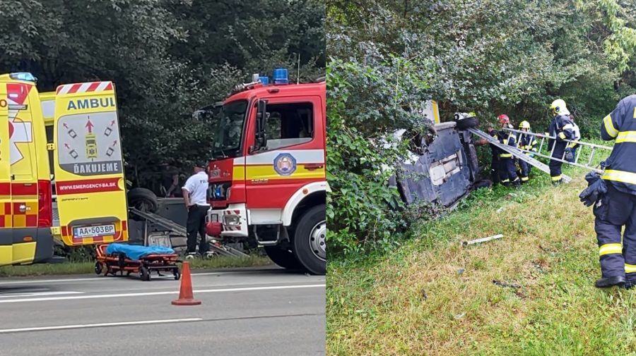 Vážna nehoda mestských policajtov v Bratislave. Dvaja ostali zakliesnení v prevrátenom aute