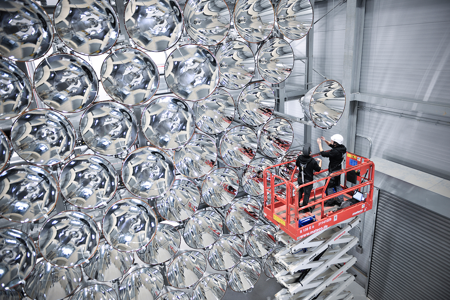Slnko nesie meno Synlight a je postavané vedcami z DLR – nemeckého aerokozmického strediska. Synlight je vytvorený 149 xenónovými lampami spojených do trojposchodovej paraboly. Obrovský stroj je 14 metrov vysoký a 16 metrov široký. Sústreďuje sa na žiarenie plochy vo veľkosti 20 x 20 centimetrov a dokáže produkovať teplotu až do 3000 stupňov. Tento konkrétny test trvajúci okolo 15 až 20 minút vyprodukuje malé množstvo vodíka, ale lampy môžu bežať nepretržite hodiny alebo dokonca dni.