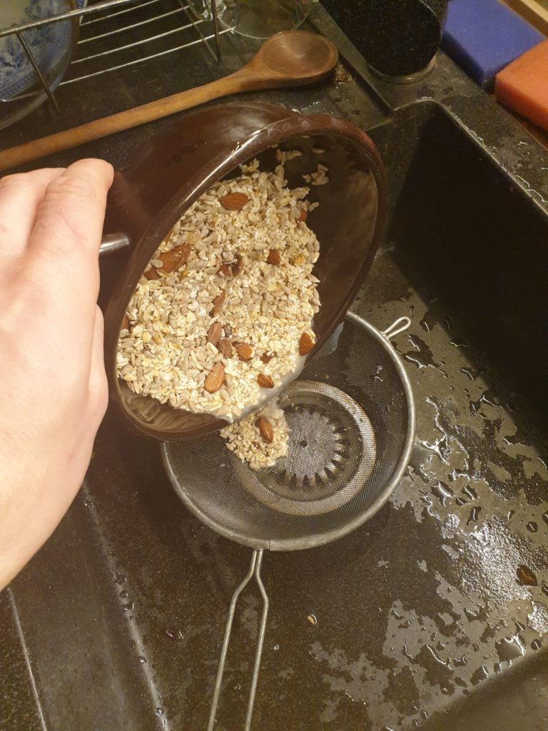 Zalejeme studenou vodou a necháme minimálne pol hodinu odmočiť. Ideálne je nechať odmočiť celú noc.