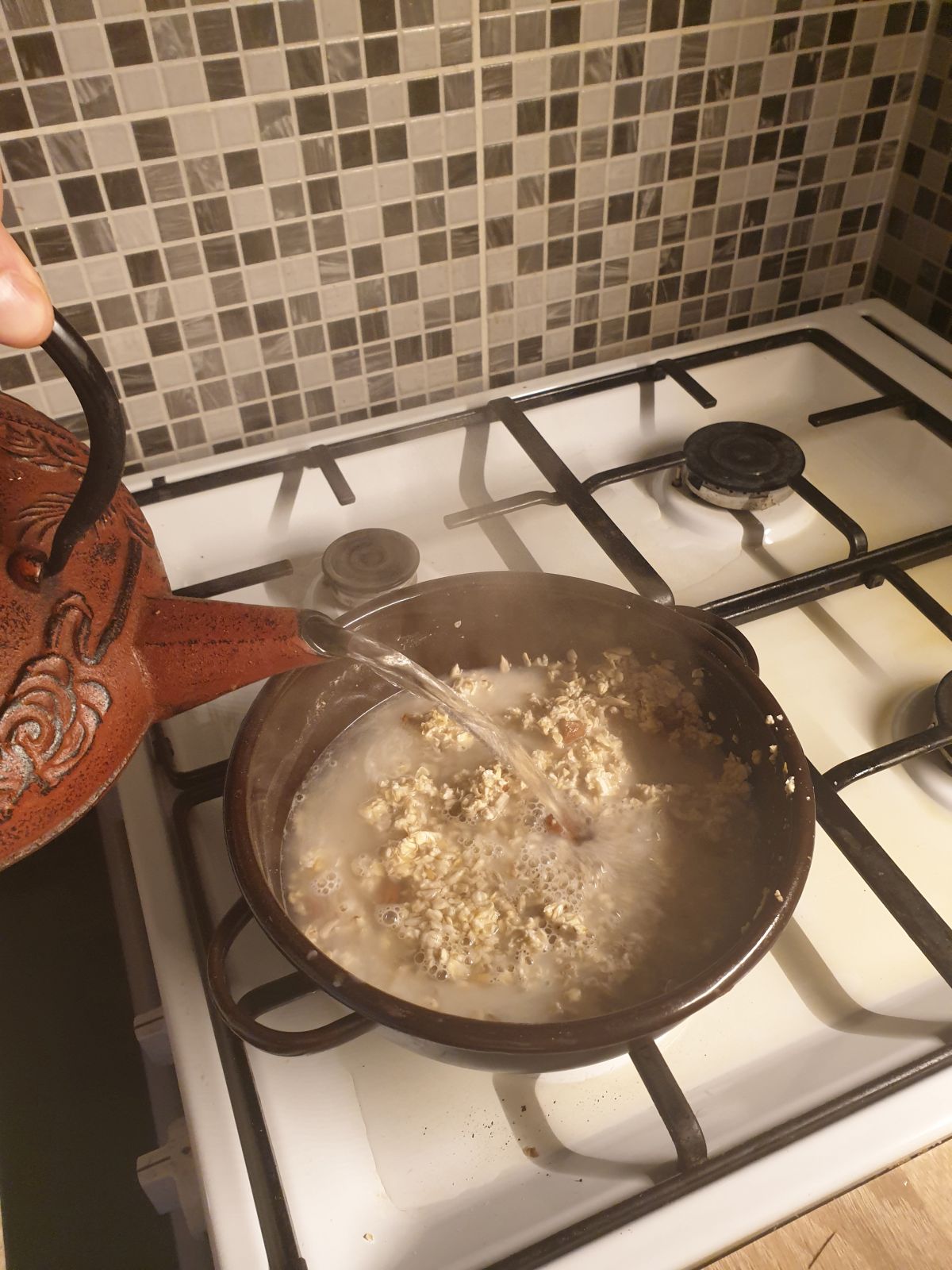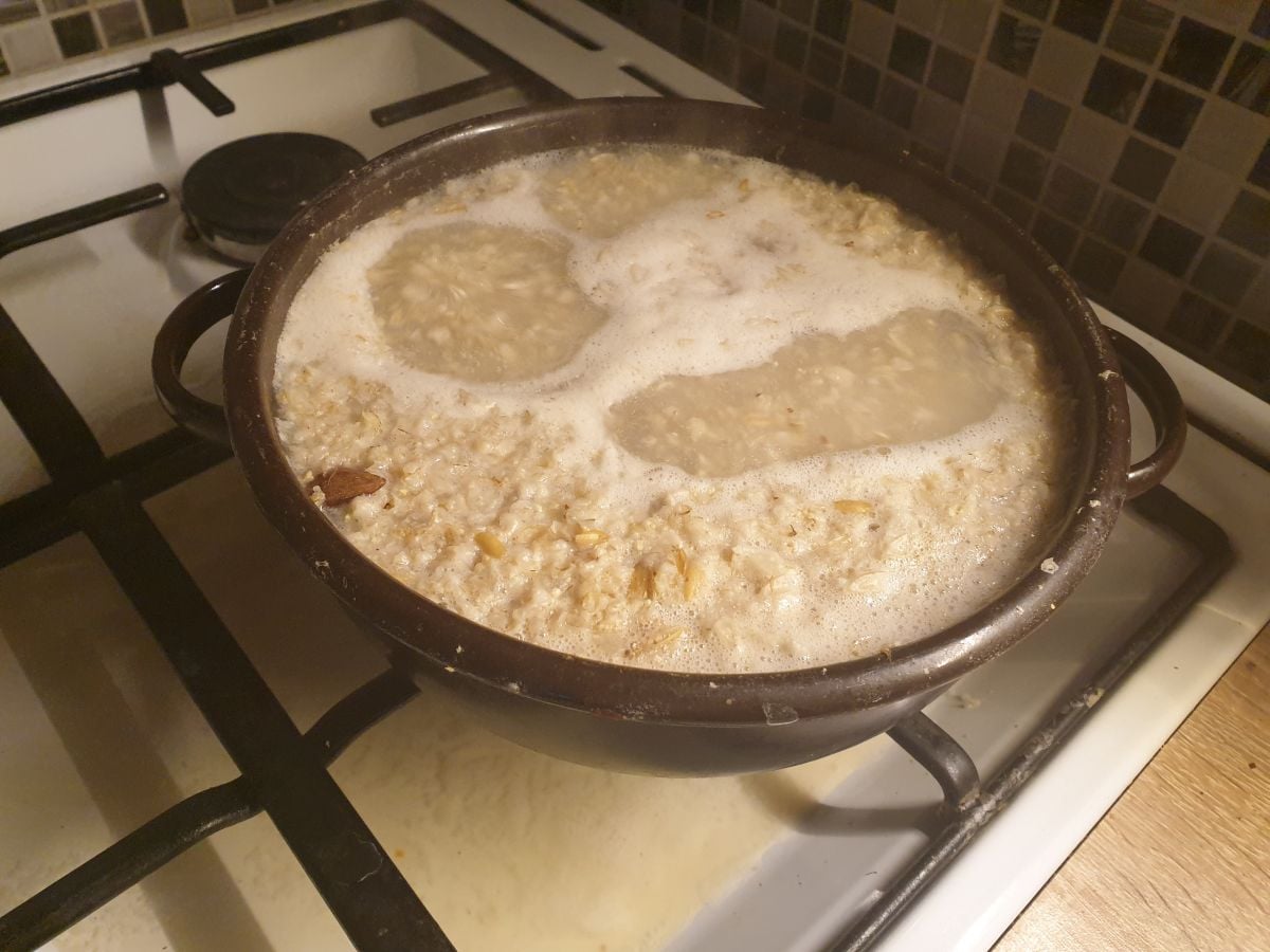a rozmočenú zmes zalejeme vriacou vodou.