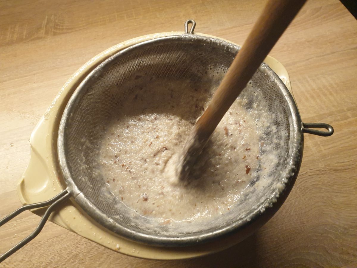 Moje sitko je také jemné, že mlieko musím miešať vareškou, aby odkvapkalo do misky a oddelilo sa od dužiny. Takéto sitko je na separáciu najlepšie.