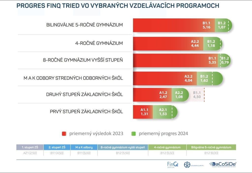 Testovanie FinQ za rok 2024 ukázalo, že už aj na Slovensku sú školy, ktoré dosahujú úroveň vzdelávania vo vyspelom zahraničí. Tie najlepšie sa môžu pýšiť dosiahnutím úrovne štandardu krajín OECD. To znamená, že žiaci dokážu samostatne analyzovať problém, rozhodovať sa a riešiť ho.