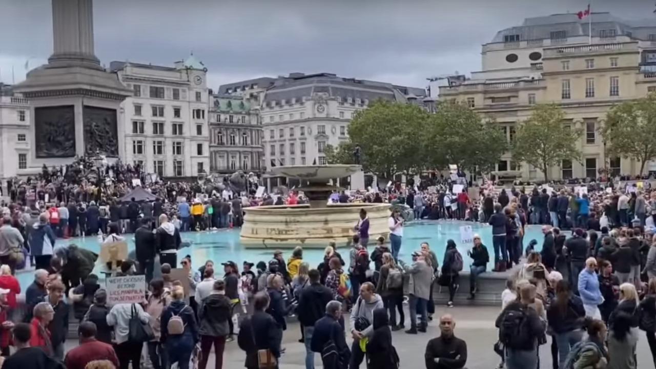 - Na londýnskom Trafalgarskom námestí sa zhromaždil obrovský dav na protest proti vládnym obmedzeniam proti Covid -19