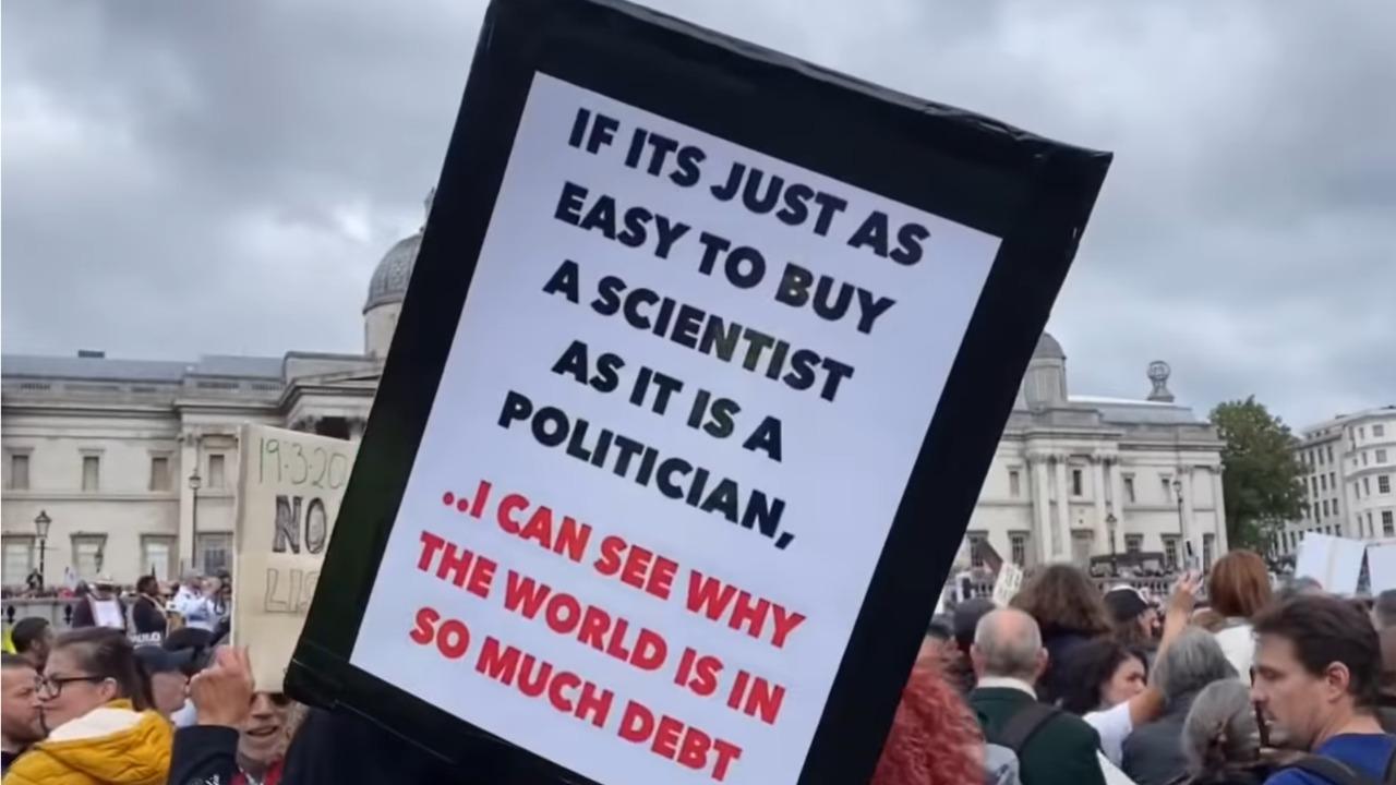 Sonia Poulton vo svojom príspevku uvádza, že ľudia prišli na protest, aby bolo počuť ich hlasy. Nechcú, aby boli očkovania proti Covid-19 povinné, a zároveň nechcú nosiť rúška.