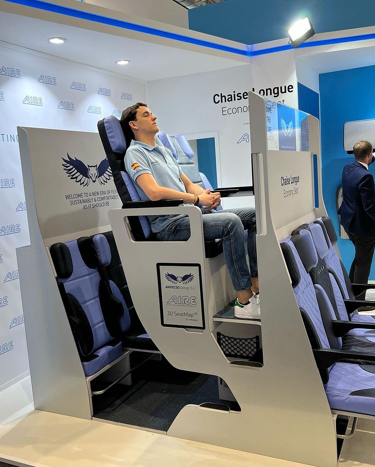 Alejander Núñez Vicente prišiel so sedadlom Chaise Longue Airplane Seat. Po prvýkrát ho predstavil v malom minulý rok, keď išlo len o vysokoškolský projekt 21-ročného chlapca.
