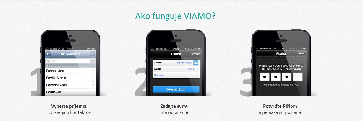 Mobilná aplikácia ponúka jednoduché riešenie pre malé platby, aby ste nemuseli posielať peniaze zložito cez internetbanking. Na prevod peňazí potrebujete iba telefónne číslo daného človeka. Vyberiete jeho meno z vášho zoznamu, zadáte sumu, potvrdíte PIN kódom a peniaze odošlete. Ide o veľmi jednoduchú vec, ktorá má budúcnosť. Svedčí o tom aj fakt, že Viamo vyhralo ocenenie na StartupAwards 2013 v kategórii „Digital“.