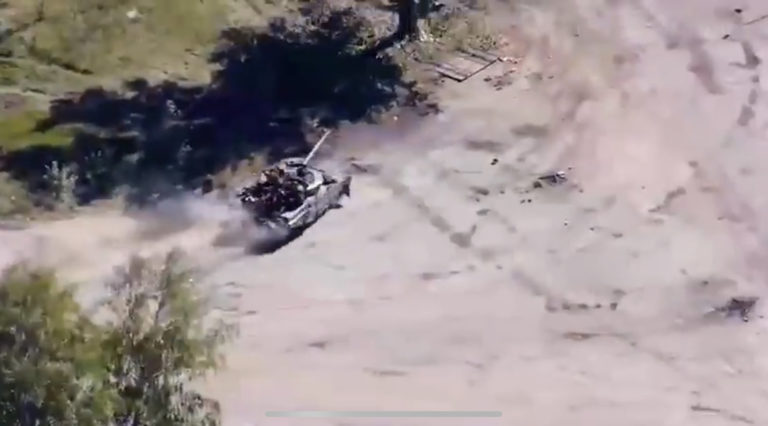 VIDEO: Ruský tank na úteku: Po ceste strácal vojakov, nakoniec narazil do stromu