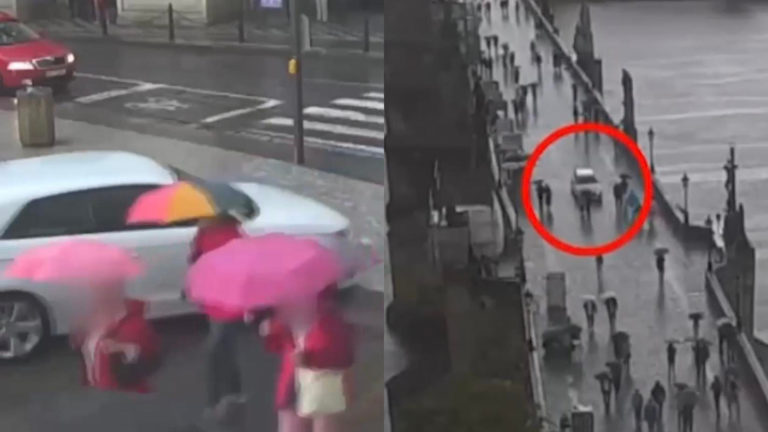 VIDEO: Zmätený turista sa vozil autom po pražskom moste pre chodcov