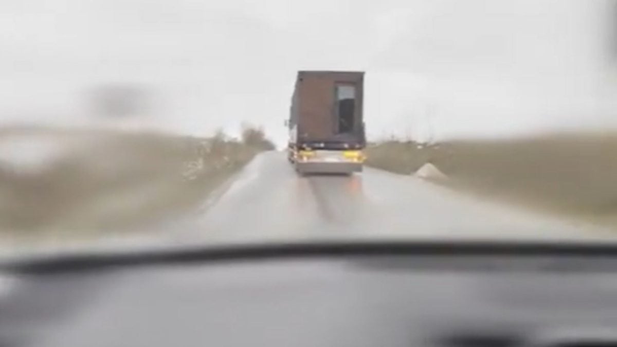 The video shows a truck loaded with modular cabins setting off on its mission. pic.twitter.com/gz7Cls0xFO