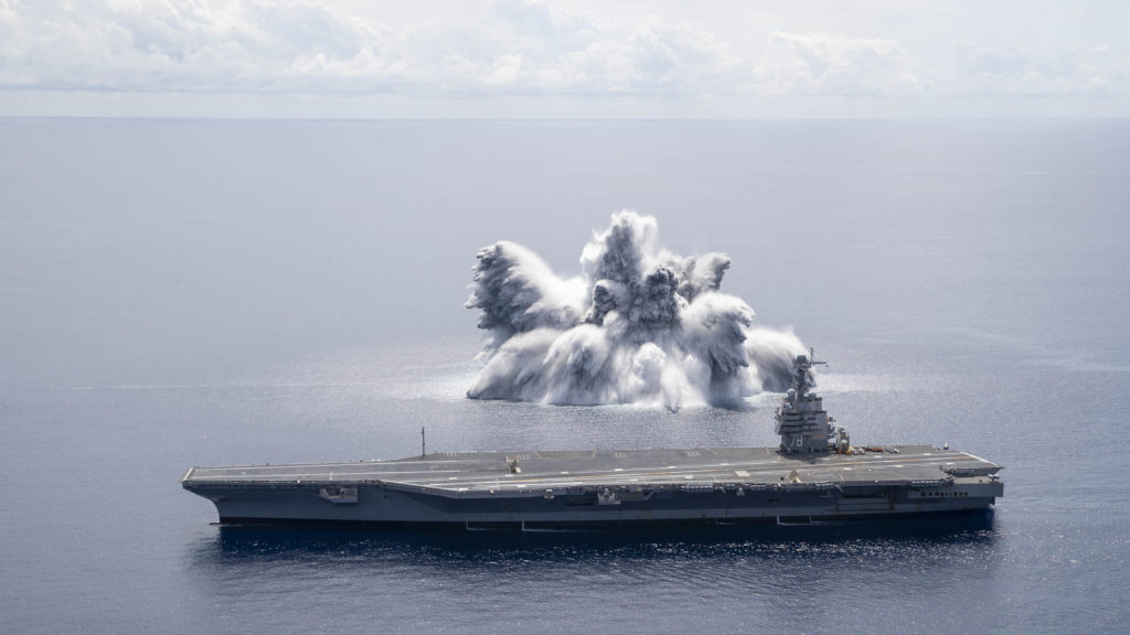 „Lietadlová loď prvej triedy bola navrhnutá pomocou pokročilých metód počítačového modelovania, testovania a analýzy, aby sa zabezpečilo, že loď je odolná voči bojovým podmienkam, a tieto rázové skúšky poskytujú údaje použité pri overovaní rázovej tvrdosti lode,“ uviedlo námorníctvo vo vyhlásení.