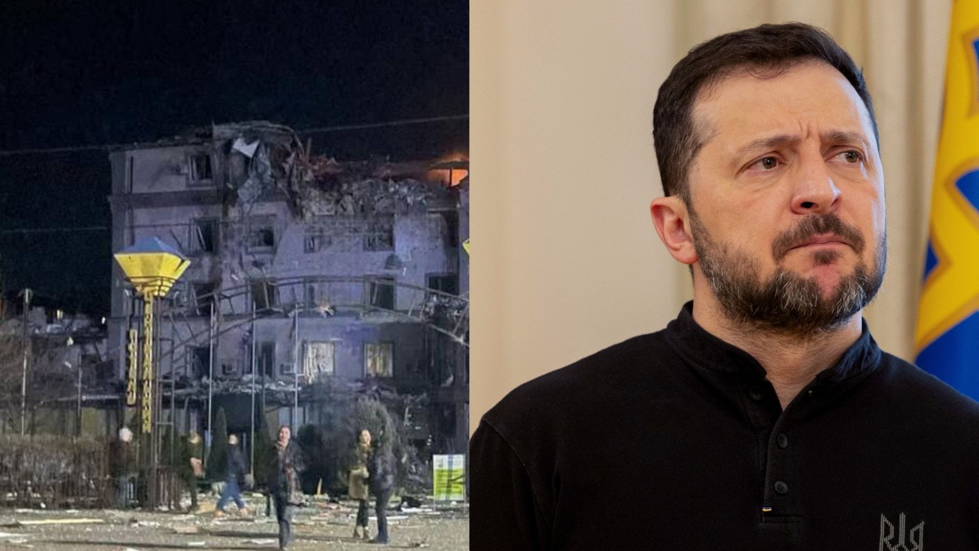 Krátko predtým sa v ňom ubytovali zahraniční humanitárni pracovníci zo Spojených štátov a Británie, uviedol prezident Volodymyr Zelenskyj, podľa ktorého títo ľudia prežili.
