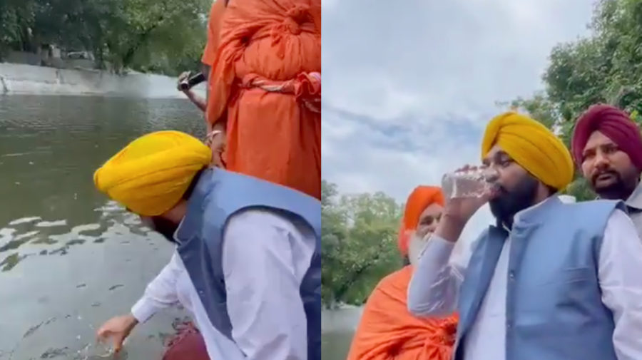 Na Twitteri ho zverejnila jeho politická strana Aam Aadmi Party (AAP). Strana vo svojom tweete uviedla, že pán Mann pil „svätú vodu“ v Sultanpur Lodhi, na zemi, ktorej sa dotkli nohy Guru Nanáka Sahíba – zakladateľa sikhského náboženstva.