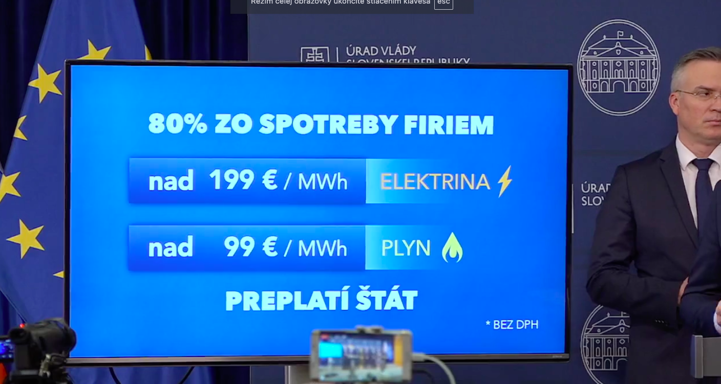 od 1. januára budú mať firmy zastropované ceny energií, a to do 31.3. v nasledovnej sume – nad 199 €/MWh za elektriku a nad 99 €/MWh pre plyn. 80 % z tejto spotreby (teda z potreby nad 199 €/MWh a nad 99 €/MWh) bude štát preplácať.