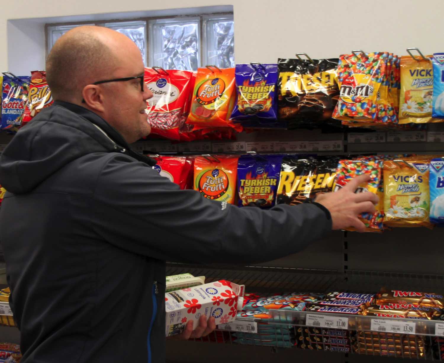 V obchode nájdeš základné veci, ako je mlieko, chlieb, cukor, konzervované potraviny, plienky a iné produkty, ktoré ponúkajú v hocijakom inom malom obchode so zmiešaným tovarom. Kvôli riziku krádeže v sortimente nie sú žiadne tabakové výrobky alebo lieky. Ani alkohol – ale ten nemôže byť vo Švédsku predávaný ani v bežných samoobsluhách.