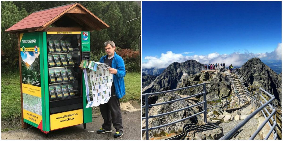 Na zblúdilých turistov myslel aj VKÚ Harmanec. Ten na Štrbskom Plese nainštaloval úplne prvý mapomat na Slovensku. Namiesto flašky minerálky ti z takéhoto automatu vypadne mapa Vysokých Tatier. Samozrejme v tradičnej „offline“ papierovej podobe. :)