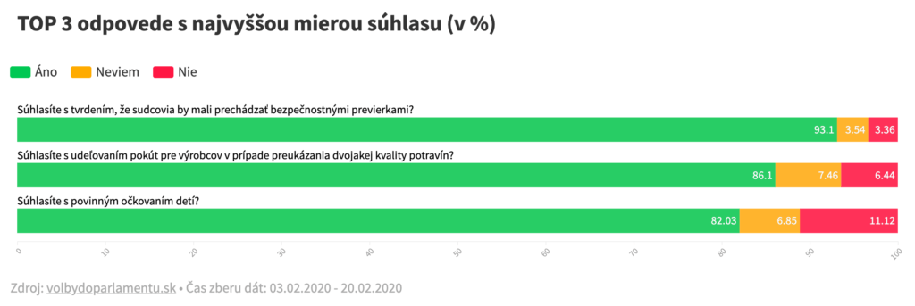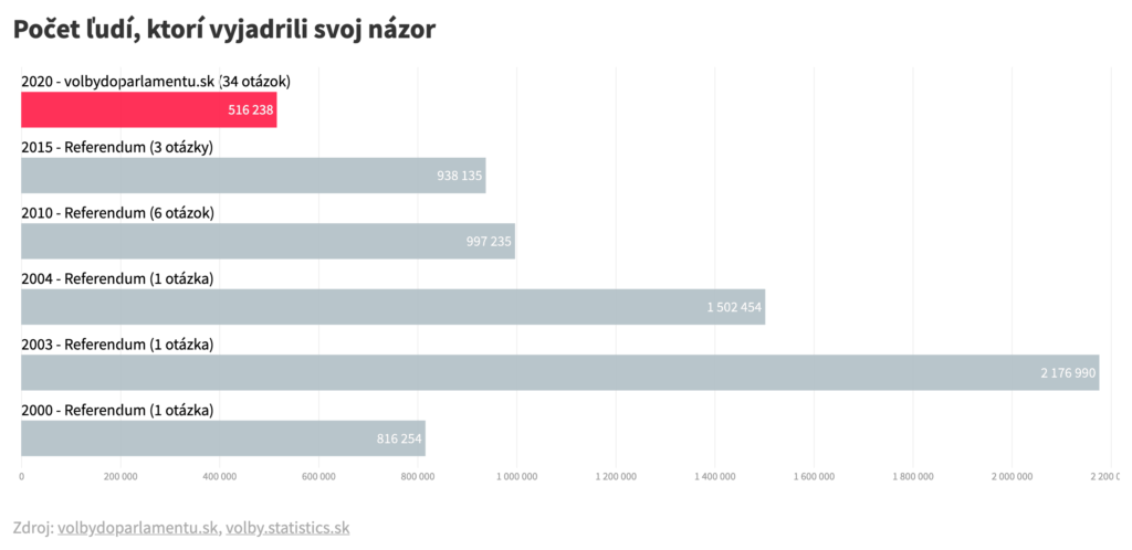 „Je potrebné upozorniť na to, že tieto odpovede nemajú rovnakú výpovednú hodnotu, ako keď sa obyvatelia vyjadria v referende. Ide len o ukážku, aká obrovská je to vzorka ľudí, napríklad v porovnaní s účasťou na referendách. Napríklad, vo voľbách do Európskeho parlamentu (2014) hlasovalo len 560 603 oprávnených voličov,“ uviedli autori projektu.