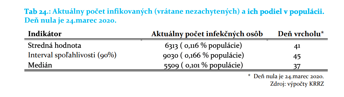 Ako štartovací deň určili analytici 24. marec, pričom najviac nakazených sme mali mať na 41., resp. 45. deň od tohto dátumu. Teda minulú nedeľu, prípadne tento piatok 8. mája. Počet nakazených je približne rovnaký, ako v analýze IZP. Tá počítala s viac ako 5000 infikovanými, RRZ to vidí o niečo pesimistickejšie- najpesimistickejší scenár hovorí o 9000 prípadoch. Najviac optimistické číslo len mierne presahuje 4000.