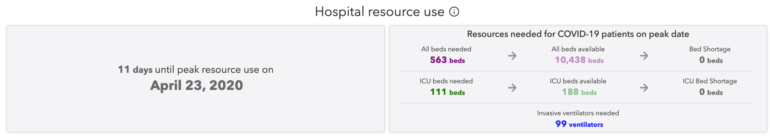 Dostupná projekcia vývoja koronavírusu na Slovensku odhaduje, že do 4. augusta by mohlo na koronavírus zomrieť 257 ľudí. Na jednotkách intenzívnej starostlivosti by sa mali na vrchole krízy ocitnúť 111 ľudí. Podľa údajov healthdata.com by to malo stačiť a dostupných je celkovo 188 miest na jednotkách intenzívnej starostlivosti.