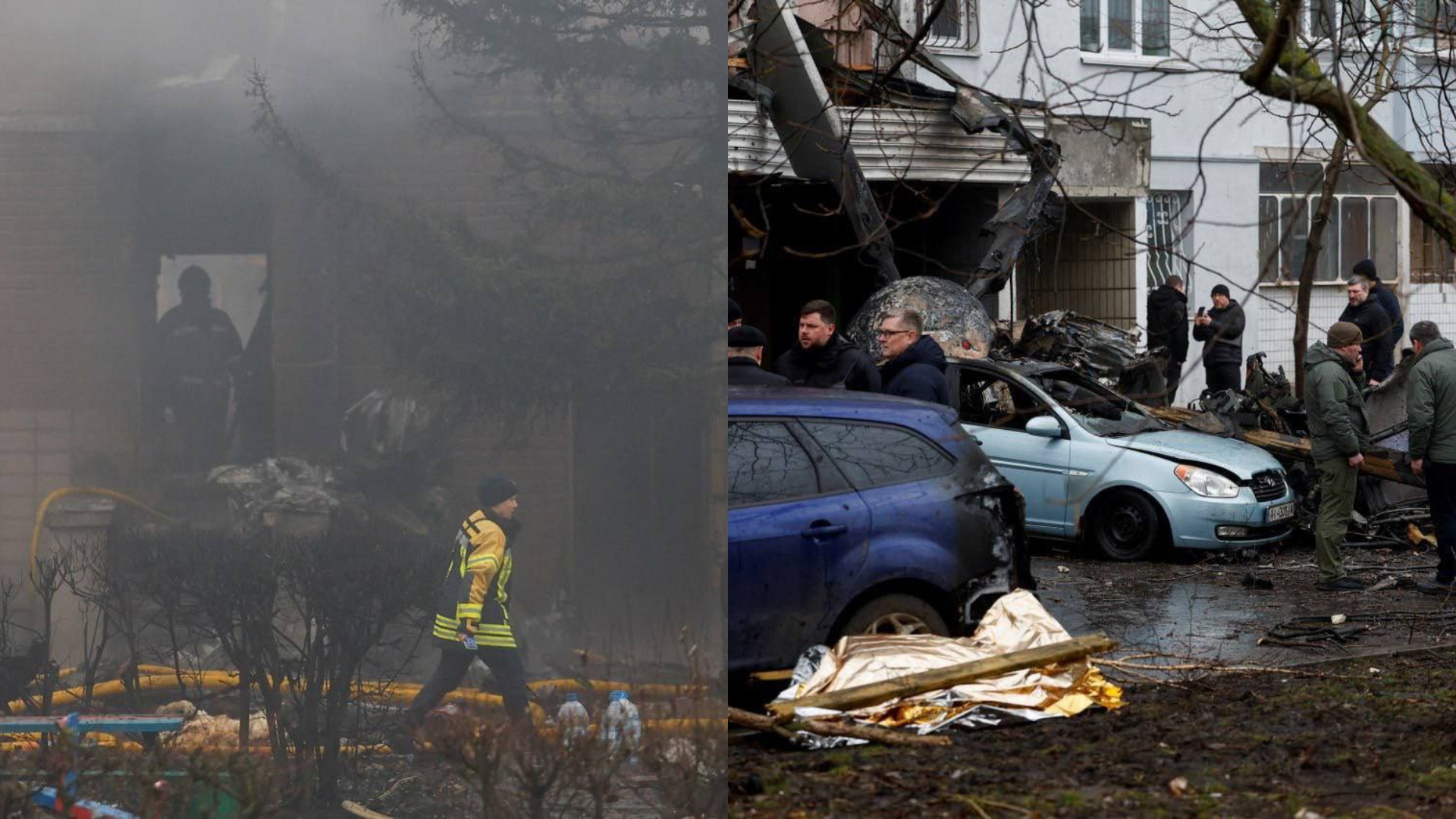 Šéf národnej polície Ihor Klymenko na Facebooku napísal, že vrtuľník patril ukrajinskej štátnej pohotovostnej službe. Po nehode vypukol požiar v blízkosti materskej školy a deti a zamestnanci boli evakuovaní z budovy.