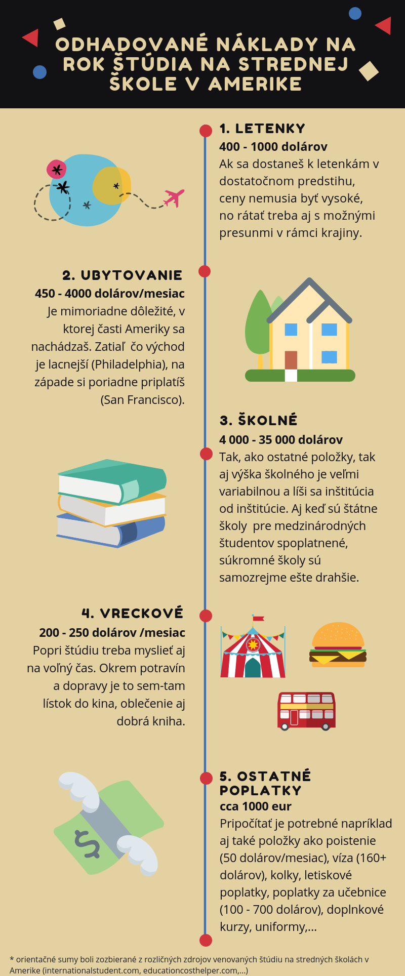 Najčastejším snom mladých je už oddávna Amerika. Študovať v Európe je totižto o niečo jednoduchšie nie len z hľadiska voľnejšieho pohybu, ale aj menších kultúrnych rozdielov, máme vo väčšine prípadov rovnakú menu a z každého kúta kontinentu si za dve hodiny lietadlom doma. Podniknúť však veľké dobrodružstvo a vycestovať za oceán sa však neodváži každý. Navyše, teenager si len ťažko zo svojich letných brigád dokáže odložiť do hlineného prasiatka toľko, aby si rok v Amerike mohol dovoliť. Letenku v akcii za euro by si hľadal len márne a o ostatných nákladoch nehovoriac. Tak si to zhrňme: