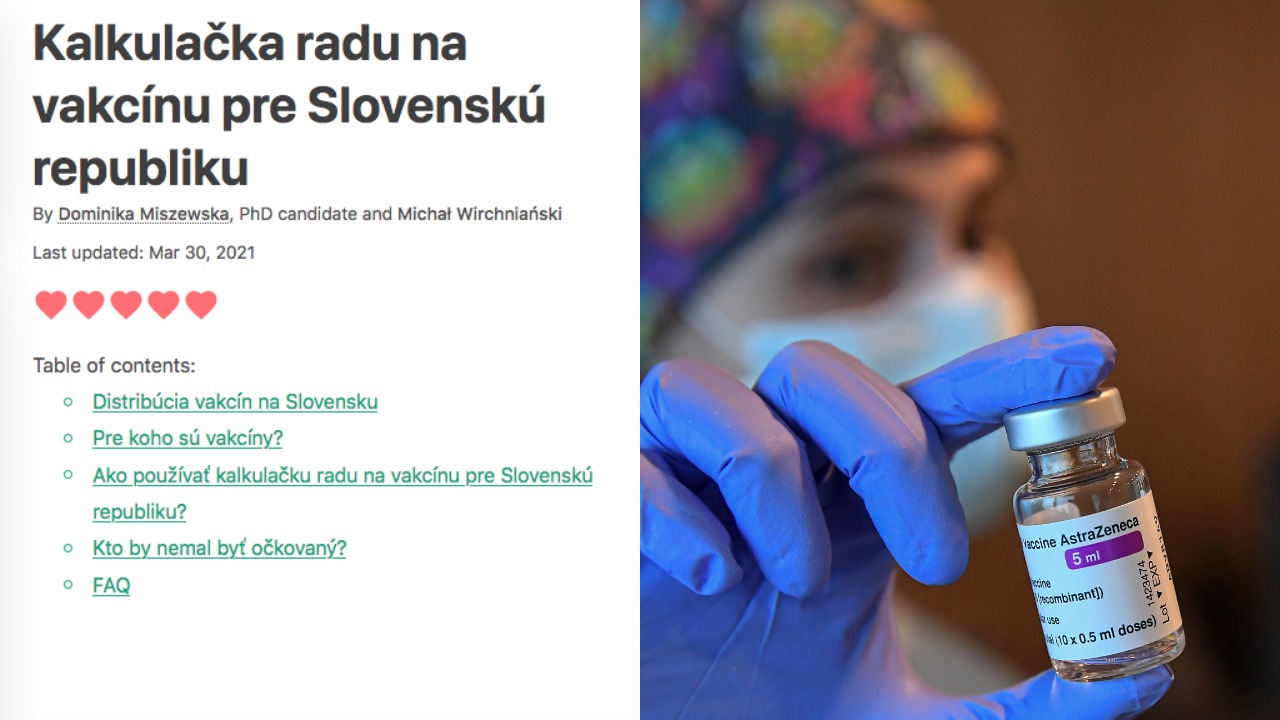 „Slovensko síce spustilo 5. fázu očkovania proti COVID-19, ale vládna kríza a kríza v zdravotníctve spôsobili, že tisíce ľudí uvažujú o tom, kedy sa majú reálnu šancu zaočkovať. Preto sme spolu s doktorandkou medicíny na Medical University of Warsaw, Dominikou Miszewskou, vytvorili nástroj, ktorý pomáha zodpovedať túto otázku,“ vraví spoluautor Michał Wirchniański.