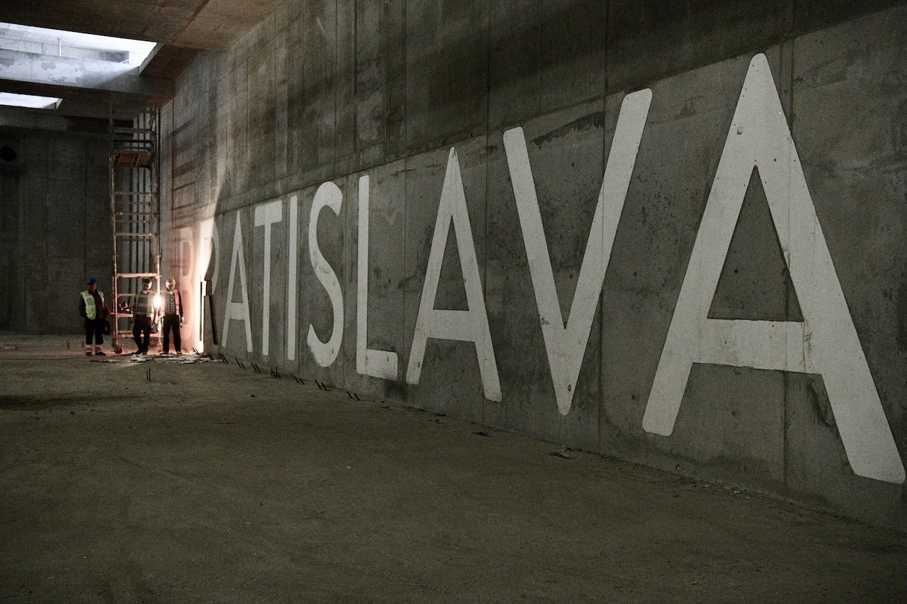 V interiéri začínajú prebiehať viaceré práce. Nášiel by si tu inštalatérov vody, izolatérov, betonárov, murárov, ale aj firmu, ktorá realizuje stabilné hasiace zariadenia. V častiach, ktoré dnes developer sprístupnil verejnosti sa s ohľadom na bezpečnosť v daných hodinách nepracovalo. Robotníkov na fotografii sme zachytili práve pri vytváraní nového nápisu.