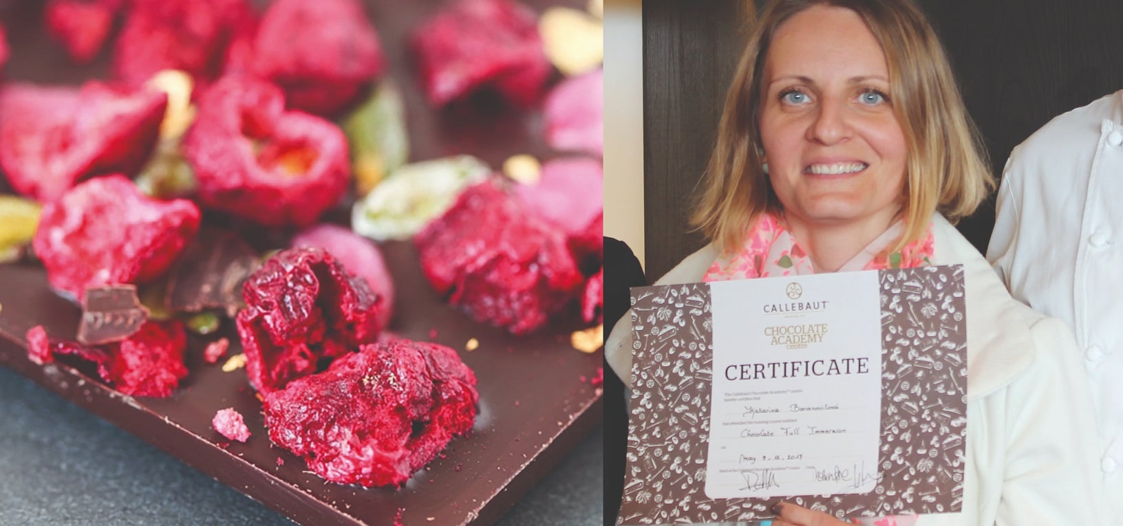 Katarína Baranovič by si pred 4 rokmi ani len nepomyslela, že sa namiesto práva bude naplno venovať čokoláde. Táto vášeň sa u nej nezrodila iba tak, Katarína už odmalička vyrastala v cukrárskom prostredí. No a napokon sa ocitla vďaka štúdiu práva priamo na čokoládovej akadémii Callebaut v Belgicku.