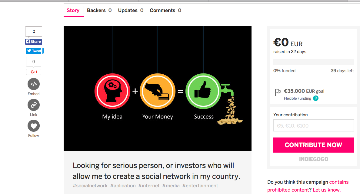 Tentokrát sa o to snaží Slovák z Poltáru. Na Indiegogo si vypýtal €35,000 na novú sociálnu sieť, určenú špeciálne pre Českú republiku a Slovensko. Tomáša nepoznám a verím, že je to veľmi šikovný chalan. Keď niečo chceš, tak si za tým choď.