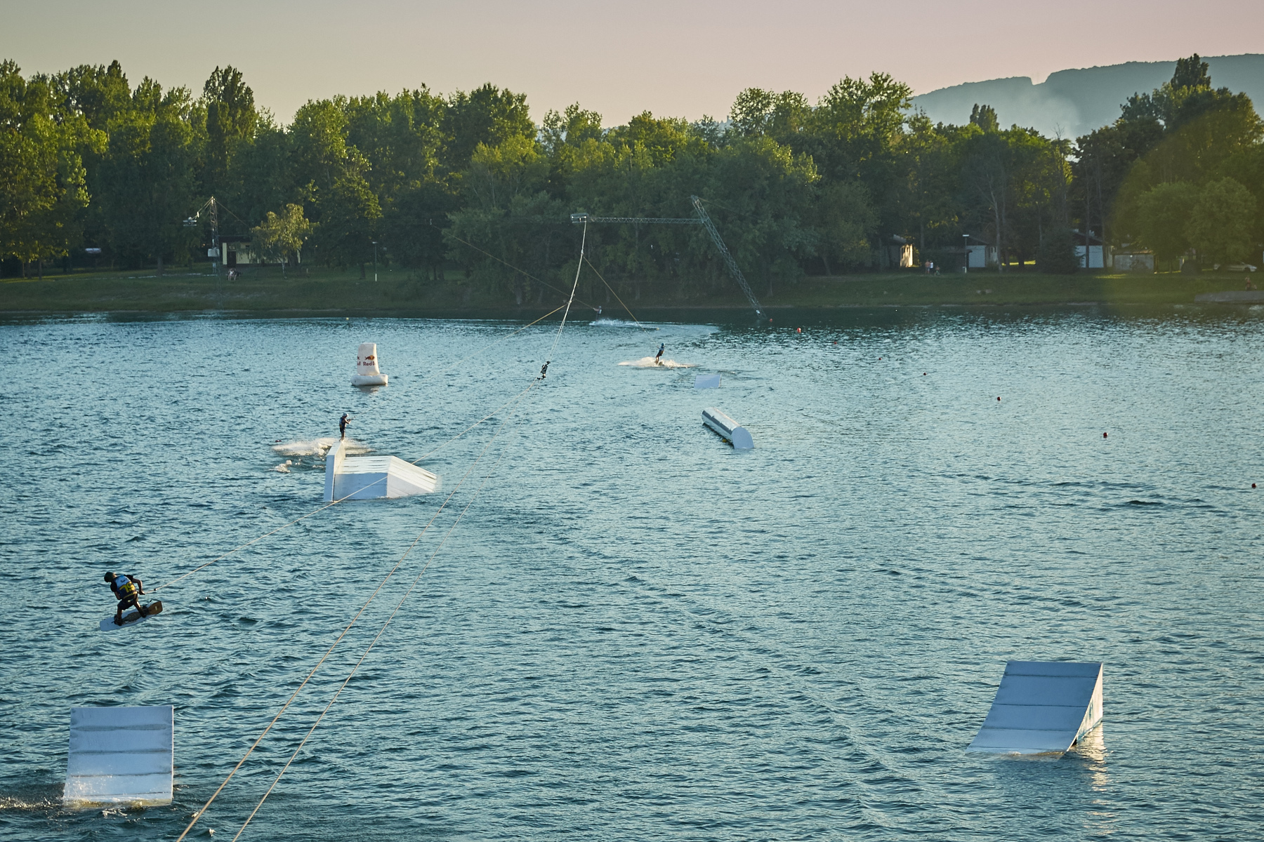 V Hangairi na trampolíne natrénuješ triky, otočky a rotácie, k dispozícii ti je aj tréningový trampboard. Svoje skills potom zúžitkuješ priamo na vode na Wakelake_u.